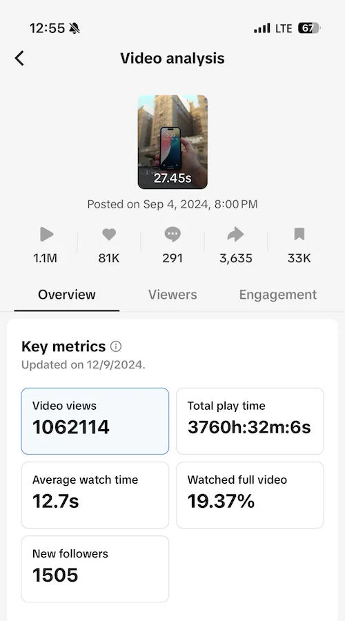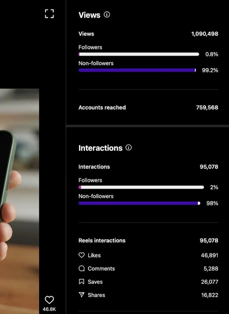My audience absolutely LOVED this content and the increased engagement led to instagram pushing it out to an extremely large audience. In total the video received 1.1 million organic impressions on ig + 2.07m on TikTok, 7.2k social shares, 6k bookmarks & 69% CTR made this Lampa's best converting content ever.